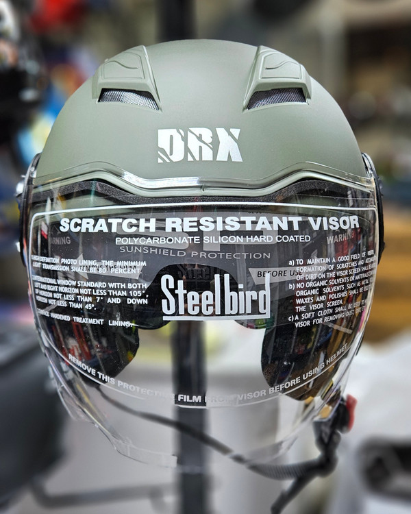 کلاه کاسکت بدون فک DRX برند Steelbird-استیل برد رنگ سبز مات