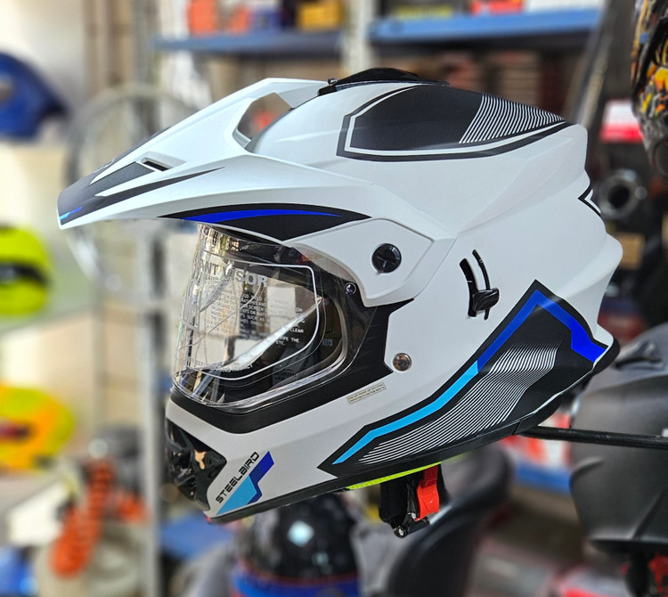 کلاه کاسکت ادونچریSBH-13 برند Steelbird-استیل برد رنگ سفید مات