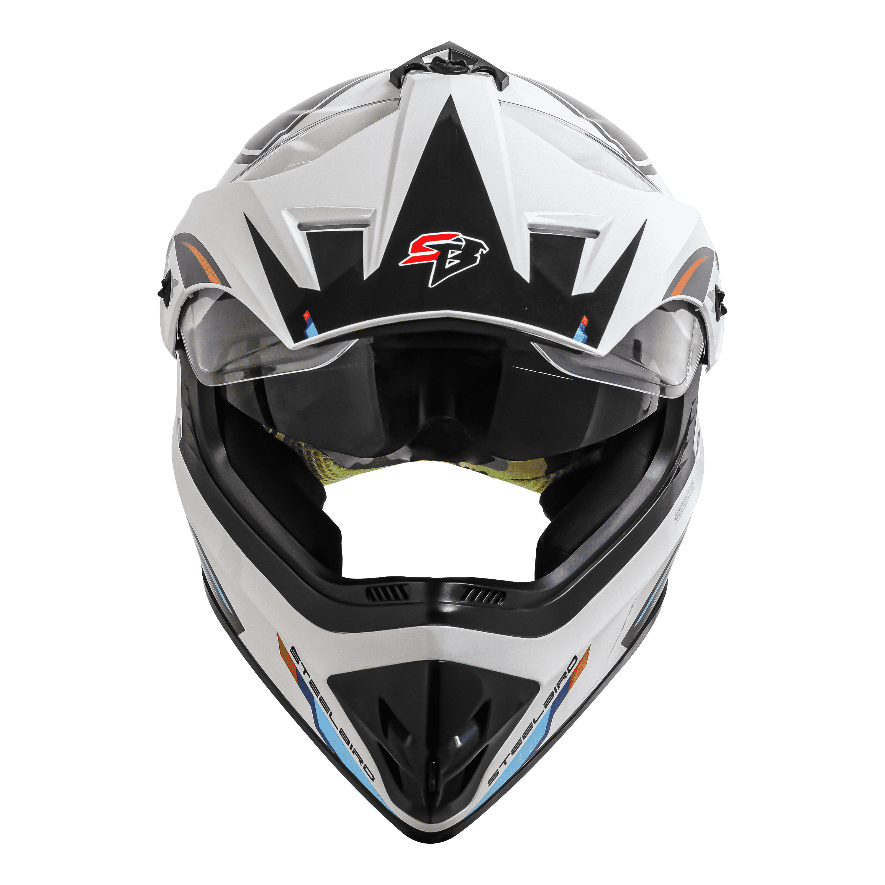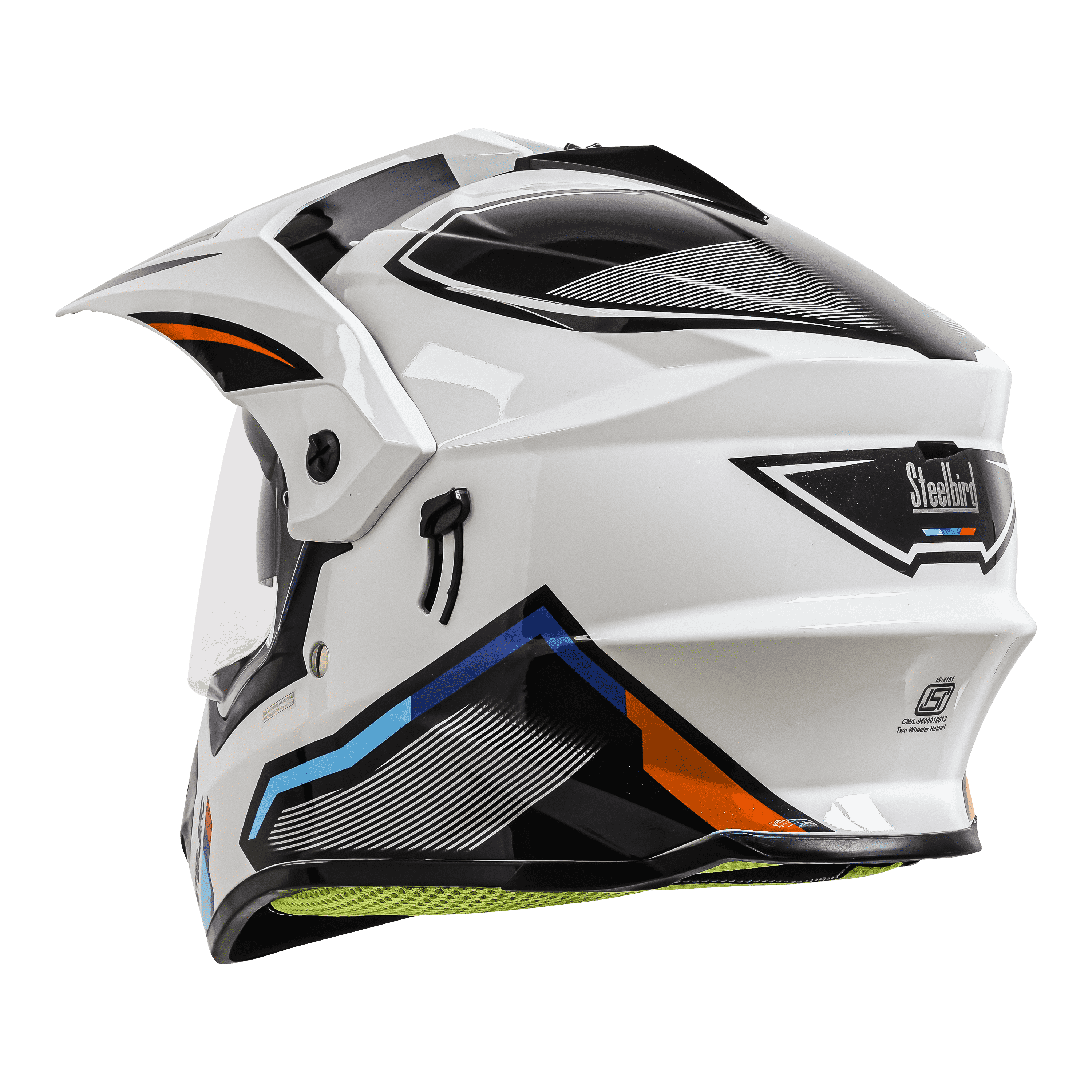 کلاه کاسکت ادونچریSBH-13 برند Steelbird-استیل برد رنگ سفید براق