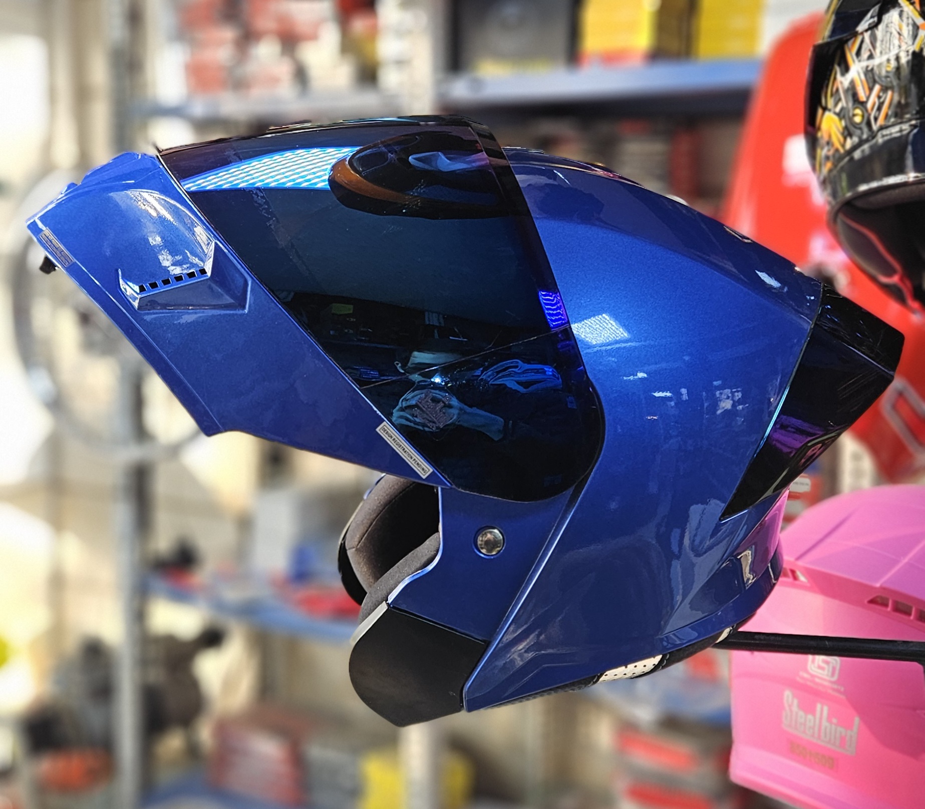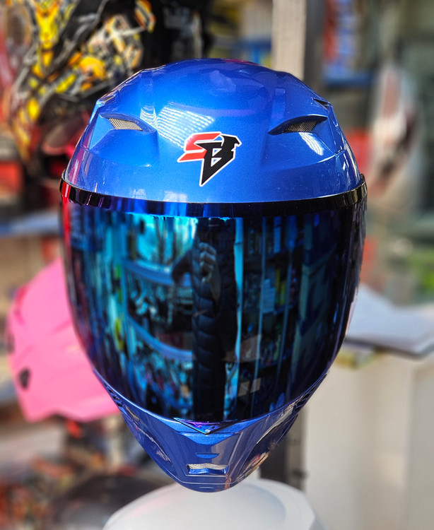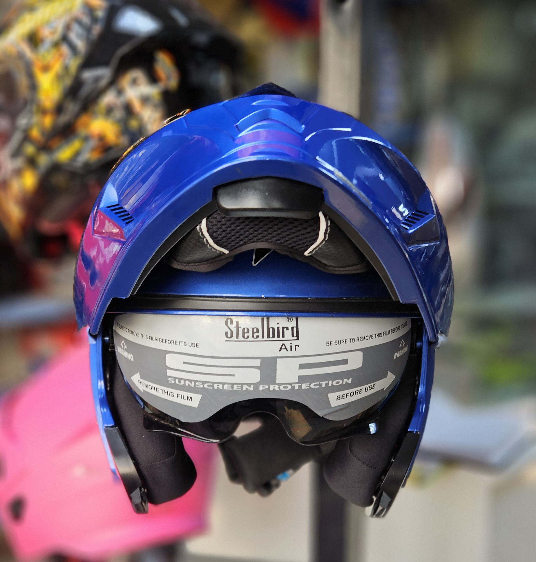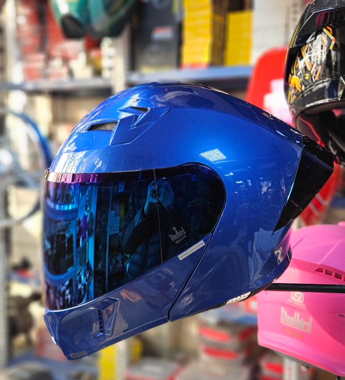کلاه کاسکت فک متحرک آبی براق مدل SBA_20 برند Steelbird