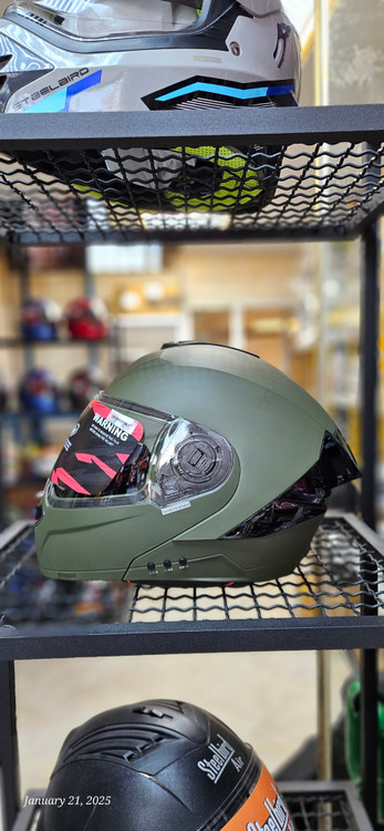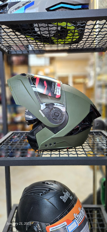 کلاه کاسکت فک متحرک بلوتوث دار سبز مات مدل SBA_8 برند استیل برد Steelbird
